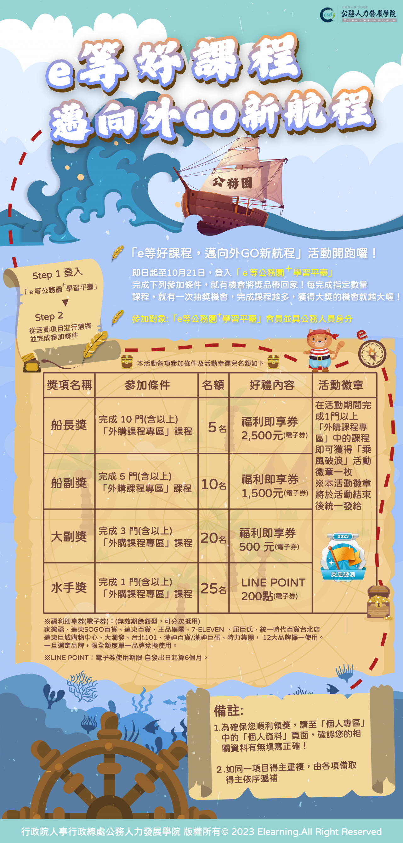 「e等公務園+學習平臺」精選「Hahow好學校」優質數位課程提供公務人員學習,並辧理線上學習推廣活動。