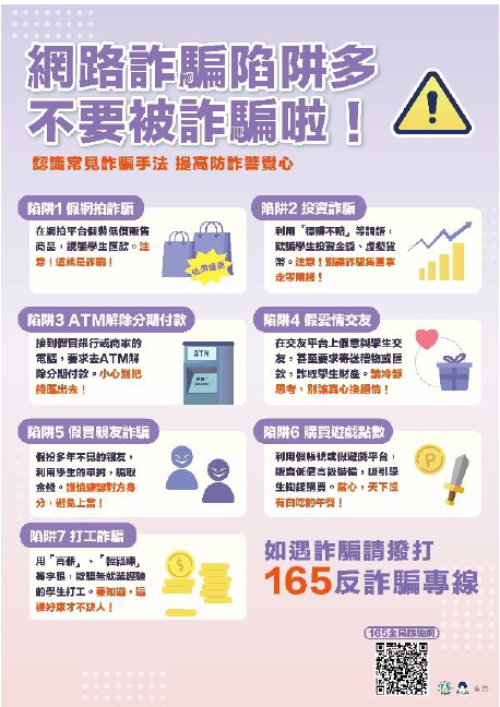 年度宣導主題: 「 校園詐騙防制 -你快樂我平安 」