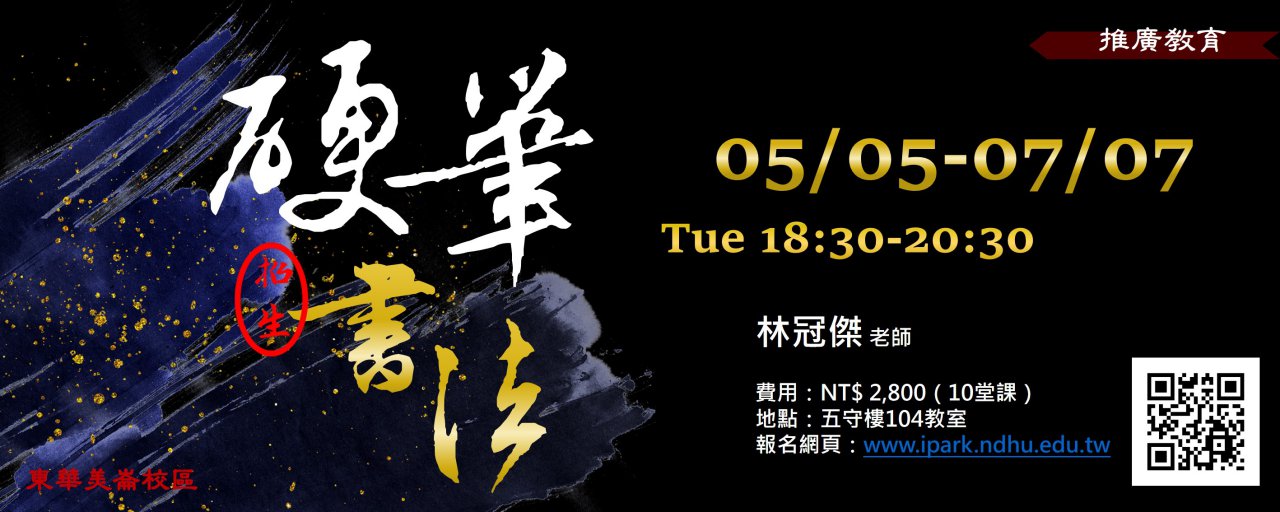 東華大學創新研究園區(美崙校區)推廣教育「硬筆書法(楷書)」課程招生海報,詳見說明。