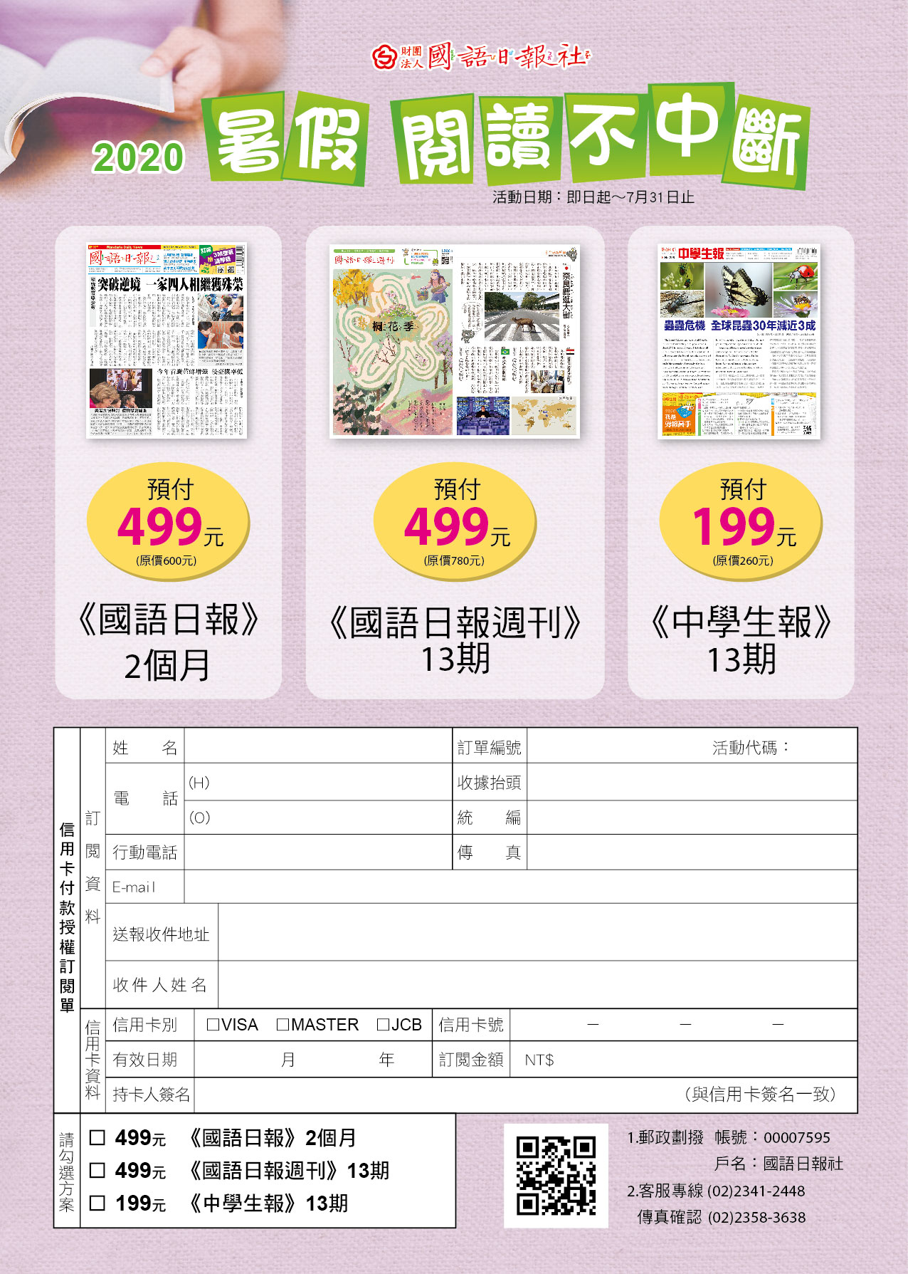 本社推廣學童於暑假期間不中斷閱讀,即日起推出「暑假閱讀不中斷」優惠訂閱專案。
