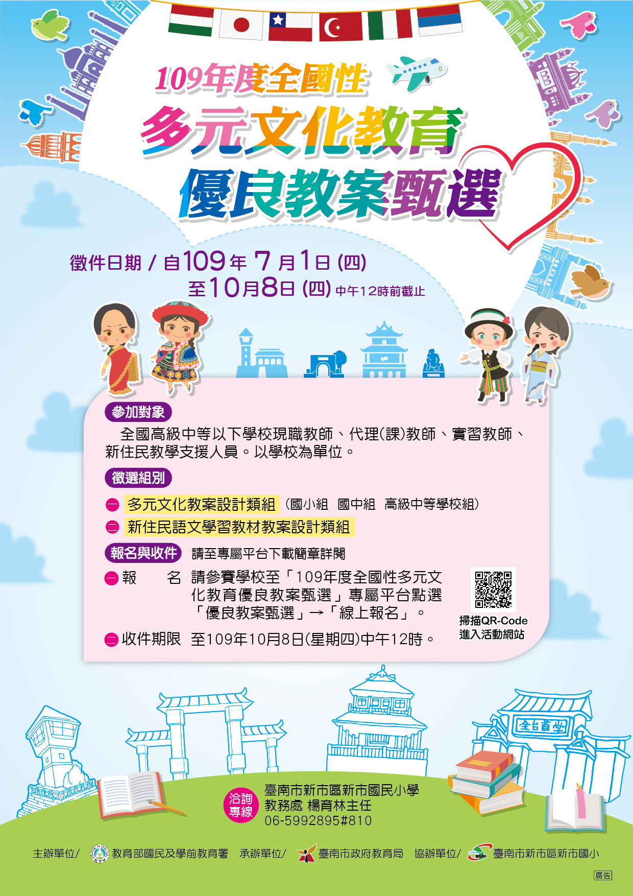 五、 | 報名方式:請參賽學校至「109 年度全國性多元文化教育優良教案甄選」專屬平台(https://newres.k12ea.gov.tw/competition)/「優良教案甄選」/「線上報名」進行線上報名。 |